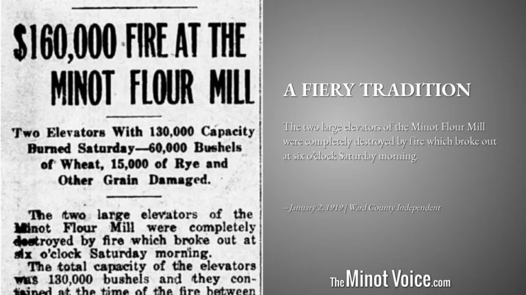 The two large elevators of the Minot Flour Mill were completely destroyed by fire which broke out at six o’clock Saturday morning. [...]Read More... from On This Day | A Fiery Tradition
