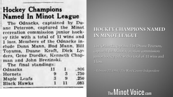 The Odnacks, captained by Duane Peterson, captured the Minot recreation commission junior hockey title with a total of 11 wins and 1 loss. -- February 22, 1951 | The Ward County Independent Why We Chose It So far, this is the earliest[...]
