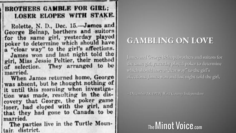 On this day in 1865, an update to the Constitution was over-riding some original language that left a lot of Americans out. In 1892, a famous holiday season ballet was making it’s debut in Russia, and in 1956, the world was beginning to move past the sins of World War II. In 1913 Minot, lynch mob justice was front page news, two brothers were gambling on love, and The Independent had a timeless holiday season message for its readers.