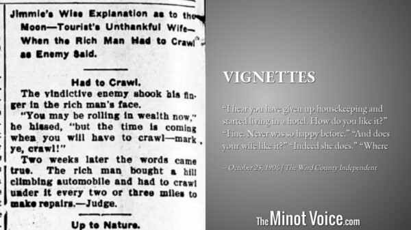 On this day in 1415, a small group of archers were having a big impact on a long war. In 1944, the U.S. sunk a Japanese behemoth, and in 1962 our Ambassador was making our case against Russia in Cuba at the United Nations. In 1906 Minot, the political moment was ripe with opinion, music education was arriving from overseas, and a shootout in Sawyer was the talk of town and seemingly later inspiration for Hollywood.