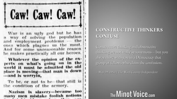 On this day, Constantinople started it’s name changing habit, we watch light bend and proved one of Albert’s theories, and a Sherpa named Tenzing took a guy named Hillary to the top of a mountain setting of a scourge of those who do no “leave only footprints.” In Minot, our editor was cawing out political nuggets, William Langer was — surprise — in trouble, and the Mouse River produced moment of heroic opportunity and two Minot boys met it perfectly.