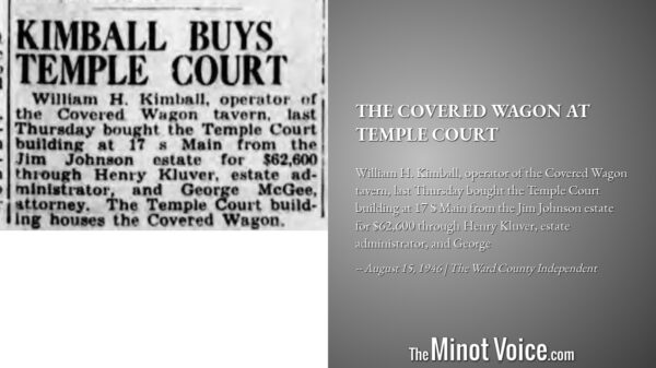 William H. Kimball, operator of the Covered Wagon tavern, last Thursday bought the Temple Court building at 17 S Main from the Jim Johnson estate for $62,600 through Henry Kluver, estate administrator, and George McGee, attorney. The Temple Court building houses the[...]