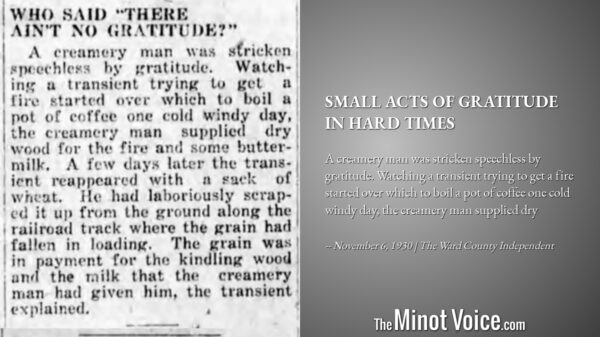A creamery man was stricken speechless by gratitude. Watching a transient trying to get a fire started over which to boil a pot of coffee one cold windy day, the creamery man supplied dry [...]Read More... from On This Day | Small[...]