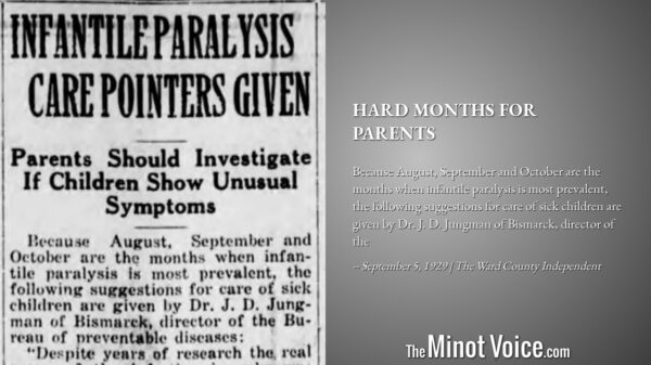 Because August, September and October are the months when infantile paralysis is most prevalent, the following suggestions for care of sick children are given by Dr. J. D. Jungman of Bismarck, director of the Bureau of preventable diseases: -- September 5, 1929[...]