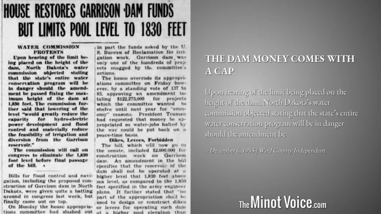 Upon hearing of the limit being placed on the height of the dam, North Dakota’s water commission objected stating that the state’s entire water conservation program will be in danger should the amendment be [...]Read More... from On This Day | The[...]