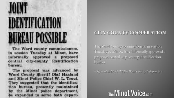 The Ward county commissioners, in session Tuesday at Minot, have informally approved a proposed central city-county identification bureau. [...]Read More... from On This Day | City County Cooperation