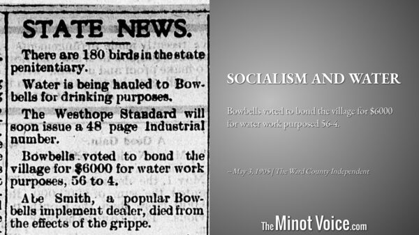 The level of the water in the wells of Minot has been growing lower steadily, according to Lewis Ellis, proprietor of the Granite Springs Water Co., who has been supplying thousands of Minot homes [...]Read More... from On This Day | How[...]